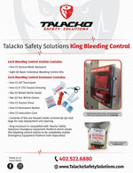 The Public Access Bleeding Control Station by Talacko Safety Solutions is the most comprehensive, public-access bleeding control system available—engineered to save lives during mass casualty events, workplace accidents, natural disasters, and active threat situations. This all-in-one station includes eight individual bleeding control kits plus a fully loaded tactical medic backpack, housed in a virtually indestructible wall-mounted enclosure.